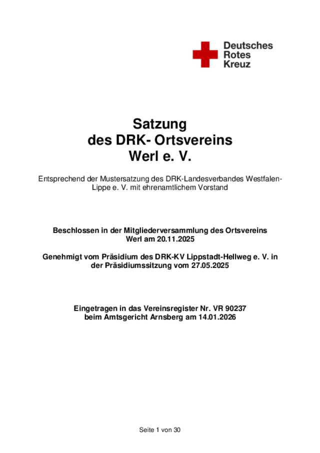 Satzung, gültig seit Januar 2026